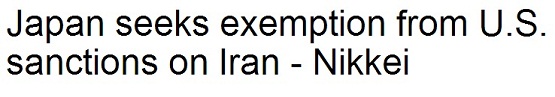 خبرگزاری «رویترز» درباره درخواست ژاپن از ایالات متحده برای معاف شدن از دور جدید تحریمهای وضع شده علیه ایران خبر داده است. به نوشته این خبرگزاری، «کوریکی جوجیما»، وزیر امور مالی ژاپن از «تیموتی گایتنر»، وزیر خزانهداری آمریکا درخواست کرده بانکهای ژاپنی را از تحریمهای جدیدی که آمریکا علیه ایران وضع کرده، معاف کند.
