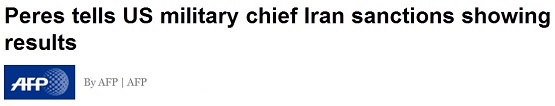 در همین حال، «شیمون پرز»، رئیس رژیم صهیونیستی در دیدار با ژنرال «مارتین دمپسی»، رئیس ستاد مشترک ارتش آمریکا گفته که تحریمها علیه ایران نتیجه بخش بوده است. به نوشته خبرگزاری فرانسه، پرز در این باره گفته: «به گمانم همه ما موافقیم که ما باید با کار را با گزینههای غیرنظامی آغاز کنیم و در عین حال، همه گزینهها را روی میز داشته باشیم. اگر بتوانیم به شیوهای دیپلماتیک این کار را به نتیجه برسانیم، بسیار بهتر است».